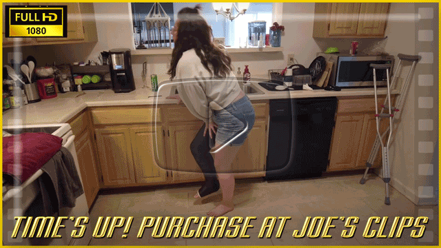 Kody's making a giantess video for a fan in pantyhose and heels. For those of you unfamiliar with giantess, she's big and you're tiny. If you don't clean her shoe properly and lick between her toes, she's going to squash you like a bug. You do fail to please her, so she gets up on the coffee table and taunts you with her heel as you run around. As she's giving her final stomp to finish you, she loses her balance and falls with a scream. Next, she's on the floor with a grotesquely broken leg. Still in character as a giantess, she curses the "ant" as she holds her severaly broken leg and begins to realize that she could get a cast out of this and make more content. She tells her camera person to keep filming so she can get more footage for her OnlyFans. She crawls to her phone and calls an ambulance. Later Kody's coming home with a purple LLC on crutches. The first thing she does is crutch to the bedroom and begins making content about her cast. She pulls off her shoe and shows off her sock she's been wearing for three weeks (actually true). She begins making a cast tease video, touching her cast and wiggling her toes and asking the viewer to lick and worship her toes. Next, she pulls some sexy black pantyhose over her LLC and continues with the tease. But when she rolls over to the side of the bed, she falls to the floor on her right arm, breaking that too. Again, Kody returns from the hospital on crutches but this time she's got an arm cast. She posted her arm break on her OnlyFans and she's excited by all the custom requests she's gotten. Immediately she begins making content and fulfilling requests. First, she has a request to do tidying in the kitchen but she's very clumsy with her two casts and begins having accidents instantly. She doesn't even last a minute before she's sitting on the floor in pain. Filming in the kitchen is a slapstick disaster and it's not long before she gets tired of beating herself up and heads to the couch for the next request. The pulls pantyhose over her legs and begins to make a foot worship video and after a painful struggle to get her pantyhose clad legs into good light, she props her legs up high for some foot worship content. She makes a few minutes of video before her leg slides off the table and bangs on the floor.