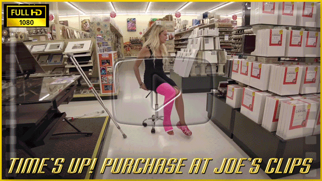 This is an idea I've had for a while now. What if I was on a shoot with a model when we found a woman in a real LLC and convinced her to join the shoot? That's exactly what happens in this clip. Lily and I are at Target with her in two blue arm casts, just browsing around, when she spots someone about her age in a pink LLC. She asks me if she thinks we should talk to her and I say yes. Angel says she's going to get close to her and see if she starts up the conversation. Lily gets close and starts splaying perfume, obviously trying to get her attention, but then the girl calls her by name. It turns out that it's someone that Lily went to college with named Audrey. Audrey says that she fell down some stairs and Lily tells her right away that she's doing a fetish shoot and points out the camera, which surprises Audrey. After checking with me, Lily asks her if she'd like to join our shoot and she agrees. Lily tells her that she just needs to crutch around and shop with her, so they head over to the shoe department. They shop around and Audrey takes a couple breaks to prop her legs up, but eventually she gets pretty tired and Lily goes to find her a cart to drive. All the electric scooters were dead so she comes back with a shopping cart with a seat built into it. Lily pushes her around in the cart as they continue to shop and it's a bit awkward and Lily accidentally bangs Audrey's leg into something.