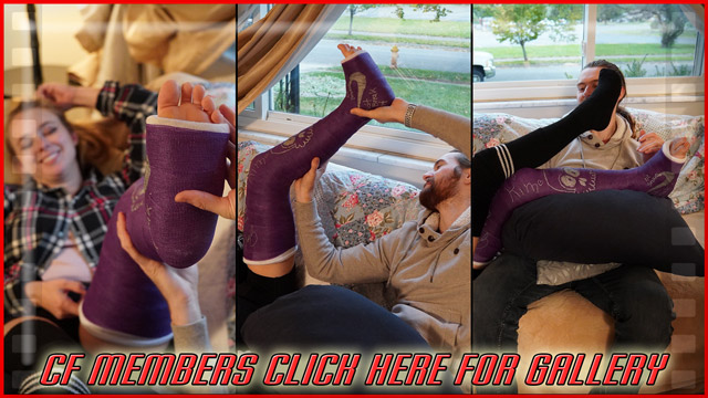 Here's a clip that was filmed yesterday when I met Muffy for the first time. She and her friend Fae travel around doing fetish shoots and were staying at a hotel. I decided to play on the hotel theme and do a story in which a bellhop gets to assist a freshly casted woman in her hotel room. Muffy's got a cute, southern accent and showed up with a nice french pedicure. In this clip, we (the bellhop) find Muffy outside trying to unload her truck and grab her bag for her. She explains that she just broke her leg and she's new to crutching. When we get to the room, she asks us to come in with the suitcase. She has a seat as we stand there waiting for a tip. She gets up to give us a tip but ends up knocking her leg into the table and needing to get on the bed with her leg propped up. Her friend that travels with her just sits there looking at her phone. She asks you to help her get her leg propped up and talks about how she broke it. She says that she's needing to do a foot worship video for one of her fans and asks if you'd mind filming it for her. You do a good job on that so she asks you if you'd take some pictures for her. You sit as she changes into something more sexy. When it's over, she asks you to put your phone number on her cast so she can call you when she needs something. Non-nude version will be on Joe's Clips.